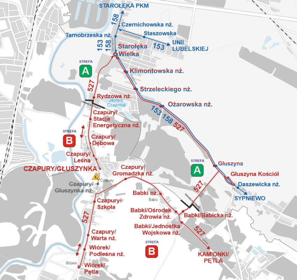 Zarząd Transportu Miejskiego w Poznaniu uprzejmie informuje, że w związku listopada 2025 roku autobusy linii nr 527 kursować będą trasą zmienioną